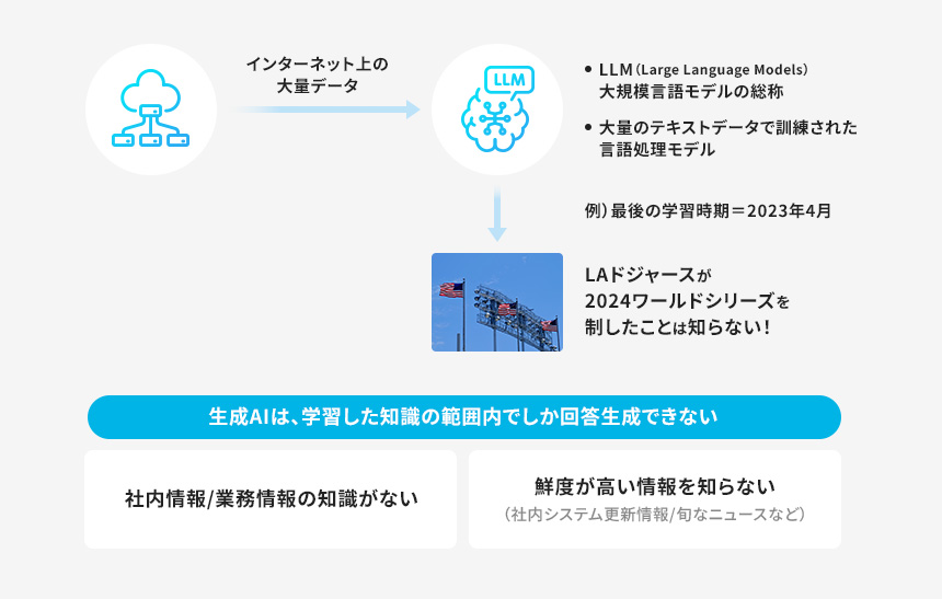 生成AIが知らないこと(会社の規則や業務情報など)を生成AIにどうやって